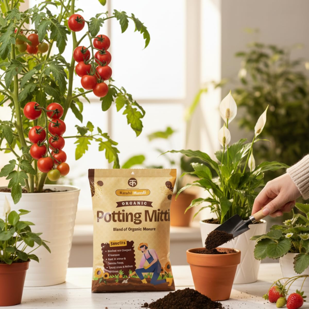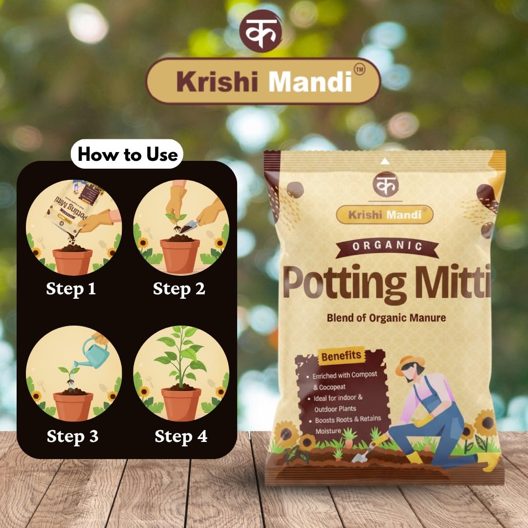 Original price was: ₹399.00.₹299.00Current price is: ₹299.00.Krishi Mandi Organic Potting Soil 10 KG – Flower Soil & Indoor Plant Soil Mix for Pots, Rose, Balcony & Garden | Organic Compost + Cocopeat Potting Mix for Fast Growth