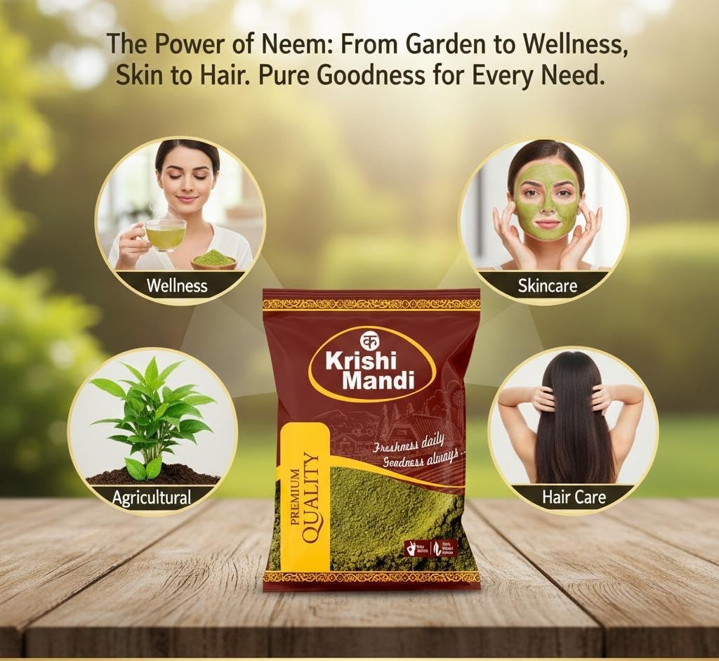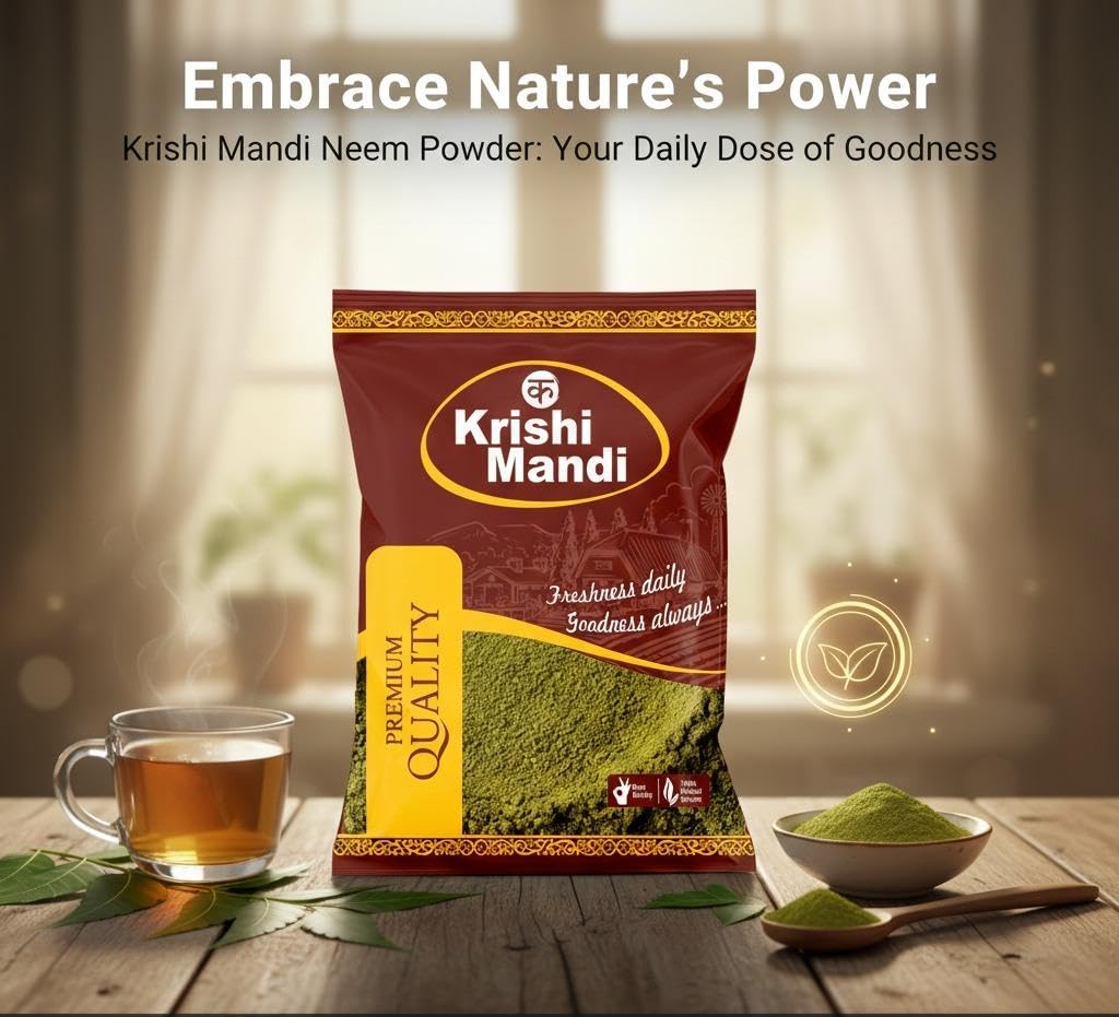 Krishi Mandi Neem Powder is made from carefully selected neem leaves and processed under hygienic conditions to retain natural quality, aroma, and freshness.